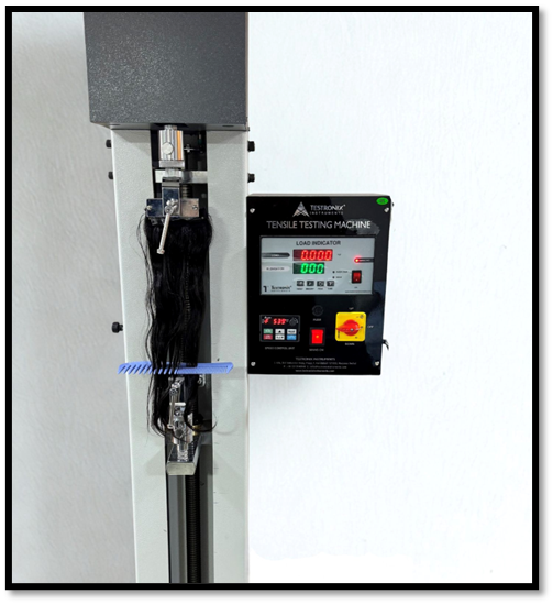 Following completion of the treatment cycles, all samples were subjected to fatigue testing using the TESTRONIX Tensile Strength Tester Automatic Combing System. This method involved controlled combing strokes applied under standardized load conditions to induce breakage.
